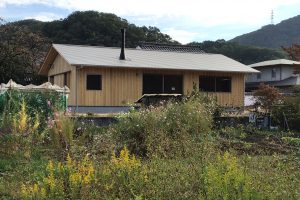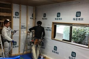 1階の床板貼りに向けて作業を進めています。 断熱材を入れ、根太を取り付けていきます。 断熱材はウールブレスを使用しています。 軒天の板が貼れました。 杉の板を貼っています。 ・・・・・・・・・・・・・・・・・・・・・・・…