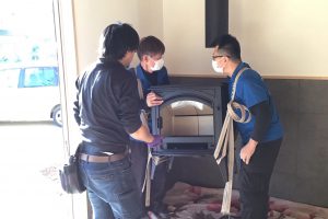 今日の現場レポートです。 最後工事ストーブを取り付けています。 ストーブの重さが170k有ります。専門家の人が搬入して来れました。 火入れが、楽しみですねえ。完成見学会の、準備が出来ました。コンパクトで、使い勝手がいいお…