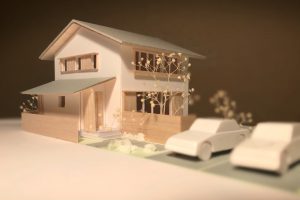 こんにちは。 ブログ木曜担当の小沢です。 模型シリーズ⑦、今回は角地に建つ2階建ての家です。 正面の南側は1階にフルオープンの窓と縁側がついています。 道路からのぞかれないように木製のフェンスを提案しています。 道路側に…