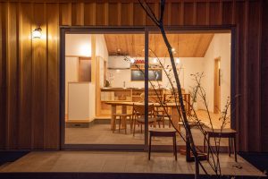 足守の町並み保存地区に素敵な家が出来上がりました。 「夜、家に帰った時に窓からもれる明かりが樹木のシルエットごしに綺麗に見えてホッとしたい。」との要望を頂いておりました。まだ外壁の杉板も植えた緑も若々しいですが、これから…