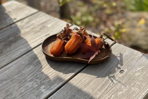 先日ブログでご紹介しました、スタッフと初めてつくった干し柿が完成しました。 干し柿が好物だという大工さんに食べてもらったら、まだ少し早いとのお言葉をいただきました・・・が、初めてにしては美味しくできた!と自負しております…