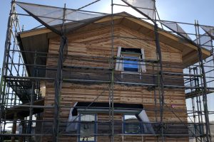外壁工事を進めています。外壁の大工工事まで終わったので、次は左官さんの工事になります。
