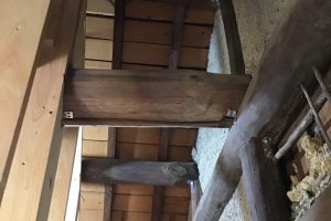和室の天井 この家で使ってあった地松を削って再利用しました。仕上げは色を塗り周りと合わせます。