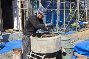 今日現場レポートです。 外部の壁を塗っています。 そとん壁ですマグマが岩石となる前に粉末となつた白州を原料としている100%自然素材です。手仕事です、塗るのは、大変な作業です。 ◆SNSでも福富建設の素敵な家をご紹介中!…