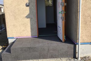 今日の現場レポートです。 玄関ポーチ、玄関収納のタイルが貼れました。 タイルの上に薪ストーブがつきます! 以上、現場から石本でした。