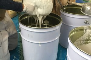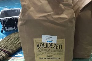 今日は壁をフェザーフィールで仕上げています。 壁は刷毛仕上げです。塗ってすぐは少し黄土色っぽく見えますが乾くと本来の漆喰の白色になります。 刷毛の跡の凹凸も出て綺麗な仕上がりです。