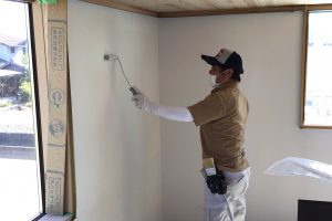 今日の現場レポートです。 壁の仕上げをしています。 フェザーフィール(自然素材)を使っています。 防臭・防カビ効果や優れた耐久性があります! 以上、現場から石本でした。