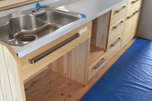 今日の現場レポートです。 流し台、レンジフードが付きました! 流し台は、杉板で出来ています。 年月が経てば光沢が出てきます! 以上、現場から石本でした。