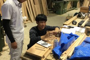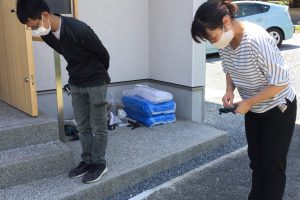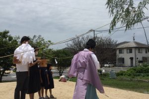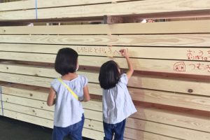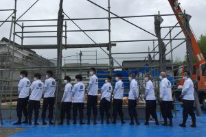 まさに梅雨の晴れ間でした。設計担当の小澤君と城谷棟梁が二人でテントの側で空に向かって、祈っていたのが天に届いたのでしょうか。暑いくらいに日がさしてきました。