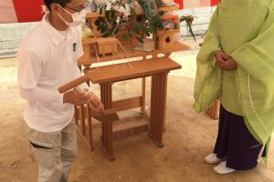 暑い最中の着工式となりましたが、お施主様ご家族の皆さまにご参加いただき開催することが出来ました。