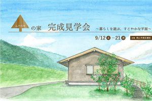 完成見学会~暮らしを遊ぶ、すこやかな平屋~ 【日時】9/12(土)~21(月)10:00~16:00 ※水曜日を除く 【会場】岡山市南区植松 【ご予約】ホームページまたは086-262-0633(水曜定休) ・ 仕事に家…