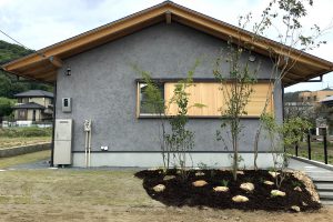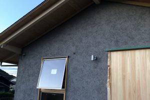 内装工事が順調に進んでまいりました。 天井を貼り終え、石膏ボードを貼っています! この上に調湿効果のある紙を貼り、その上にフェザーフィール塗りで仕上げていきます。 外部の庇も取り付け中です。