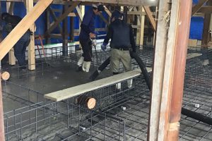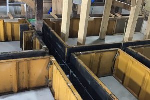 立ち上がりのパネルを組んでいます。この後アンカーボルトを取り付けていきます。