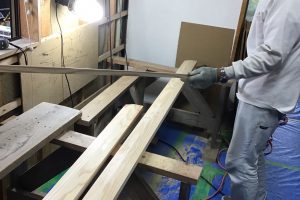 大工さん杉の材料を加工しています。仕上がり具合などを確認して取り付けてます。