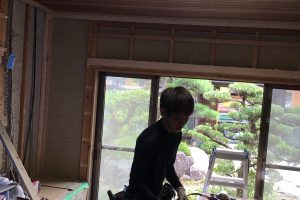 壁下地を新しく施工。数十年経った建物を直すのは、手間をかけて一仕事。