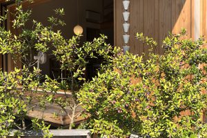 高屋の家の生垣には銀梅花が植えられています。パブリックとプライベートの境界線を優しく区切る役目をしています。この時期は黒いオリーブのような果実が沢山実り、葉と共に良い香りを楽しませてくれます。 地中海原産ですが、名前の通…