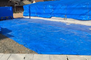 こんにちは。 少し暖かくなって花粉症にはつらい季節になりました。 現場では着々と上棟の準備が進められています。 構造材は雨で濡れることのないようにしっかり養生されます。 ブルーシートの中はこんな感じ。 仮組みされた材料が…