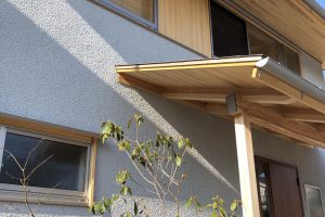 暖簾をかける腕木、竿取り付けました。腰板の高さ位までの暖簾を掛けます。建具を閉めると格子戸になるので落ち着いた雰囲気になります。古いものに新しいもの取り付けるので色を合わせるのがむずかしいです。
