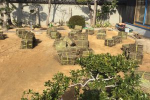 庭の仕上げです。芝が届きました。(鳥取県産)一枚ずつ色合いや根のはり具合など確認しながら並べていきます。最後にしっかりと水やりをします。