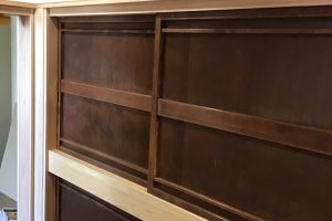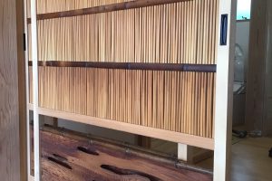 今日は建具の切込みです。以前使っていた建具を利用して物入れを作りました。思い出が詰まっている事で大切にして貰えそうです。