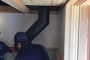 今日は薪ストーブを取り付けています。リビングから薪が燃える炎を見ながらくつろぎたくなりました。いろいろと楽しめる薪ストーブいいですね。