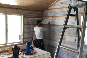二期目の断熱工事が終わり、壁、天井を貼っています。 石膏ボードの上に、紙張り工事して、フェザーフィールを塗って行きます。 どちらも数に限りがございますので、ご興味のある方はお早目にお買い求めください。 <夏の家づくりイベ…