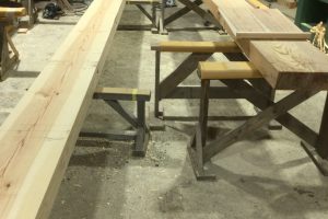 地松の天然乾燥材 松材のもつ 美しい色艶が見られます これから、岩本棟梁がこの美しく強い松材を活かしていきます。