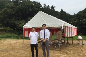 緑豊かな素晴らしい環境に恵まれた立地での着工式でした。三世代揃われたお施主様の前で石本棟梁、設計担当の三宅がご挨拶をさせていただきました。 地鎮祭は、吉備津彦神社の宮司様に取り仕切っていただき、滞りなく納めていただきまし…