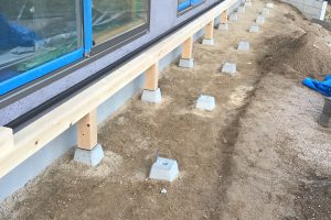 入口枠の取付け作業中です。 寒い日が続きますが、陽当たり良好なので家の中は思った以上に暖かく作業が出来ます。