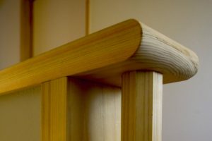 田中棟梁に補助手摺のサンプルを作ってもらい、お客様に握りやすい直径を選んで頂きました。今回は32mmに決定しました。直径だけでなく身長に合った高さもご確認頂きました。 廻り階段の補助手摺や玄関ホールの掴まり棒など、高さ方…