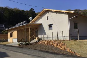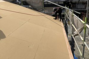 上棟から10日ほど経ちました。 屋根仕舞。 筋交を入れ、構造を補強します。 サッシ枠を入れる下地をしています。 しばらく外部工事を進めていきます。