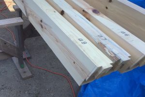 地松 登り梁の加工 軒裏化粧板(杉板本実張り)