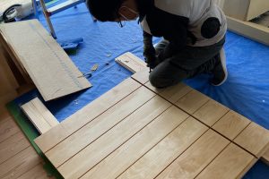 赤木棟梁がオリジナルキッチンを作製しているところです。こうして、手作りの一品が完成していきます。