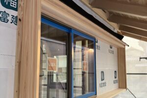 外部のサッシ木枠がつきました。 今でも格好いいですが、外壁が仕上がれば木がより引き立ち格好良くなります。 今日はお施主様が現場に来てくださいました。自分たちの仕事を見てもらい理解してもらうことも大切なことだと思っておりま…