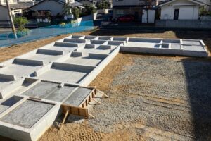 こんにちは。 草刈に明け暮れた夏が過ぎ、福富建設のモデルハウスが着工しました。 しばらく地味な(でも大切な)基礎工事が続きます。 L字型の平面計画になっています。 ギャラリーのすぐ横なので工事の進み具合が良くわかります。…