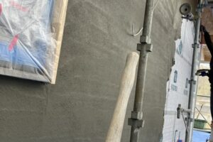 森本左官さんが外壁工事に来てくれました。 外壁の仕上げは「そとん壁」になります。 今日は下塗り工事です。 お施主様も来てくださり一緒に左官工事を見ることができました。 今日は寒い中でしたがありがとうございました。