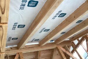 床板を張っています。 床板には、厚さ30mmの杉材を使用しています。 今日はお施主様とご親戚の方が現場に来てくださいました。ゆっくり見てもらい、家づくりのお話もできてよかったです。 自分の部屋がどう仕上がるか、トイレや洗…