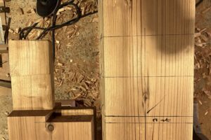 おはようございます!大工の森です。 今週も手刻み加工をしていきます。今日は柱の加工を進めていきます! 棟梁が墨付けした材料をしっかりと確認しながら加工します。
