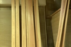 国産材の杉板を使っています、杉には赤白の色が付いています、 色分けを考えて一つの枠にして行きます。