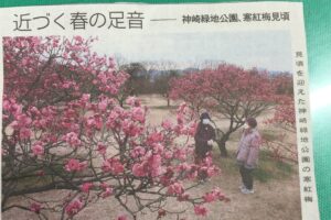 早咲きの寒紅梅が一月下旬に満開を迎えたそうです。これから、白梅やしだれ梅も二月下旬に満開になり、三月上旬まで楽しめるとのことです。