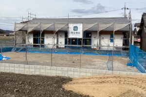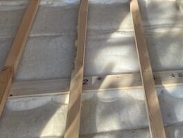 床を貼る準備をしています。 断熱材はウールブレスを使っています。 床材は杉の板を貼ります。