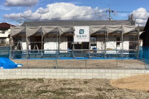 ラス網を張って、その上にそとん壁を塗って行きます。 壁割れ防止にメッシュを塗り込んでいます。