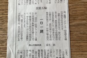 技能五輪について、取り上げていただけたことに感謝いたします。実際に若い職人を連れて参加させていただき、大変いい勉強になりました。 23歳以下の「技能五輪全国大会」に参加させていただきましたが、これからの職人としての技能を…