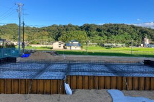 こんにちは。 杭工事が終わって基礎工事を進めています。 基礎とは木造の骨組を乗せるコンクリート部分の事です。 砕石で整地した後、鉄筋を並べていきます。 鉄筋を組み終わると、第三者機関の検査員さんにチェックを受けます。 無…