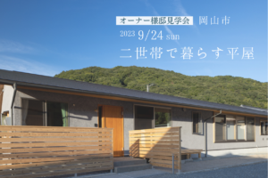 こんにちは。広報の後藤です。 夜は秋の虫の声がするのに、日中はまだ真夏のような暑さですね。 ・ さて、9月のオーナー様邸見学会のお知らせです。 今回のお宅は、「二世帯住宅の平屋」です。 完成見学会にお越し頂いた方もいらっ…