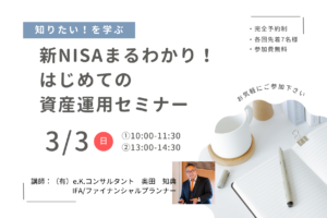 こんにちは! 先日開催しました「新NISAまるわかりセミナー」、ご好評につき第2回目の開催が決まりました。 前回予定が合わなくて、、という方はぜひお越しください♪ . 講師は(有)e.Kコンサルタントの奥田さんです。 □…