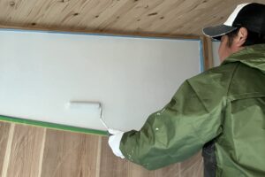 内部の壁の仕上げ工事が始まりました。 濱野屋塗装店さんです。 仕上げはフェザーフィールのローラー仕上げです。やわらかく落ち着いた雰囲気に仕上がります。 木部など汚れないように綺麗に養生してくださり、丁寧に塗ってくださいま…