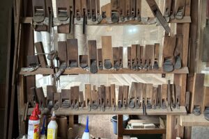 守屋建具さんに打ち合わせに行ってきました。 鉋だけでもこれだけあります。プロの技を支える道具たちです。